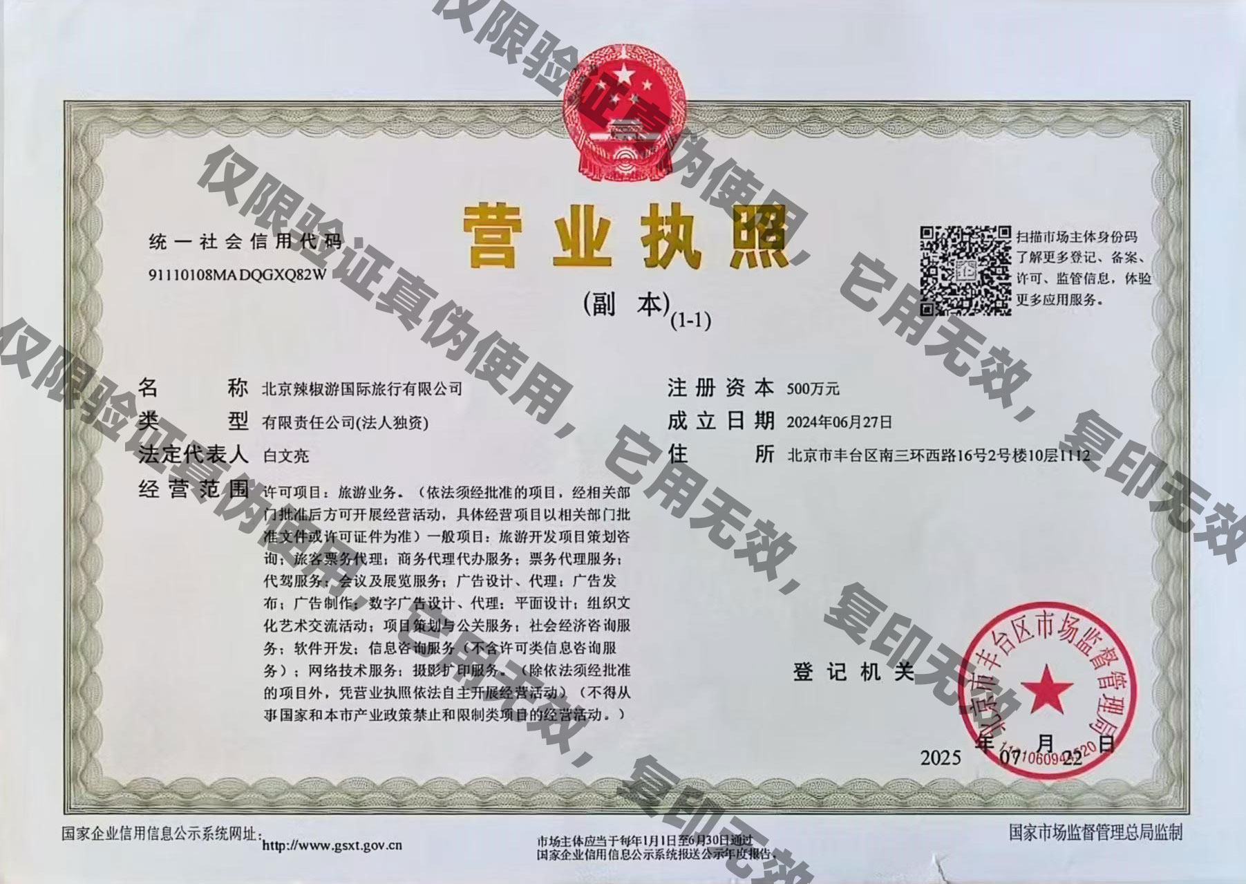 辣椒游营业执照+经营许可证+旅责险保单(1000万保额)